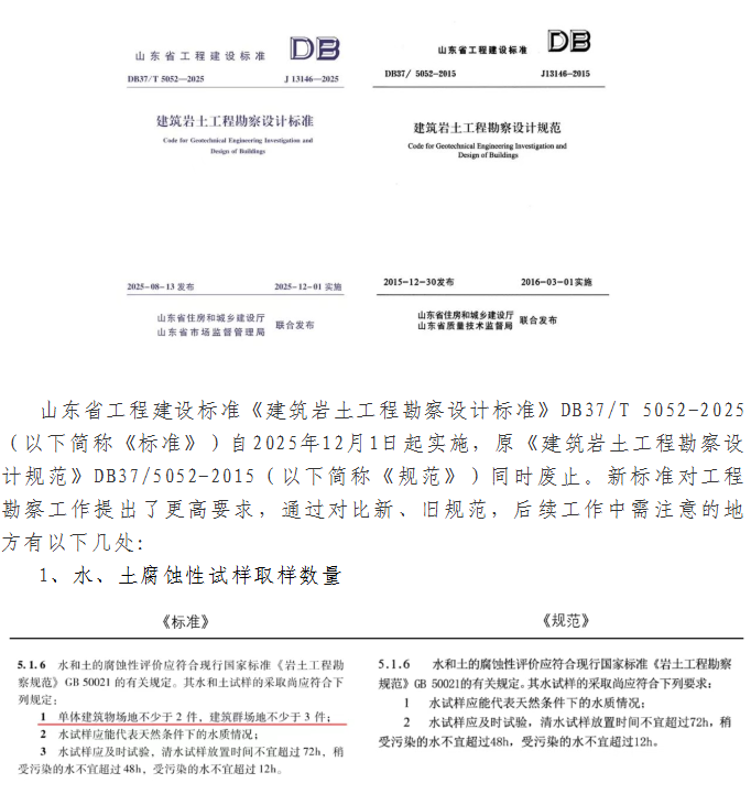 《建筑岩土工程勘察设计标准》DB37/T 5052-2025新标准实施对工程勘察工作的几点影响