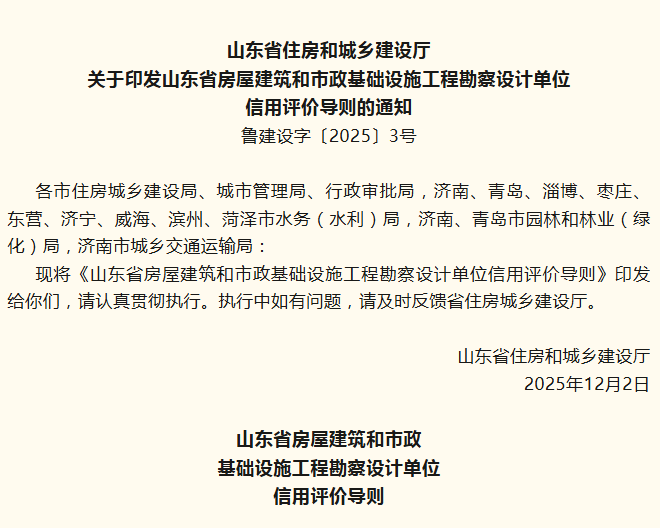 山东省住房和城乡建设厅关于印发山东省房屋建筑和市政基础设施工程勘察设计单位信用评价导则的通知