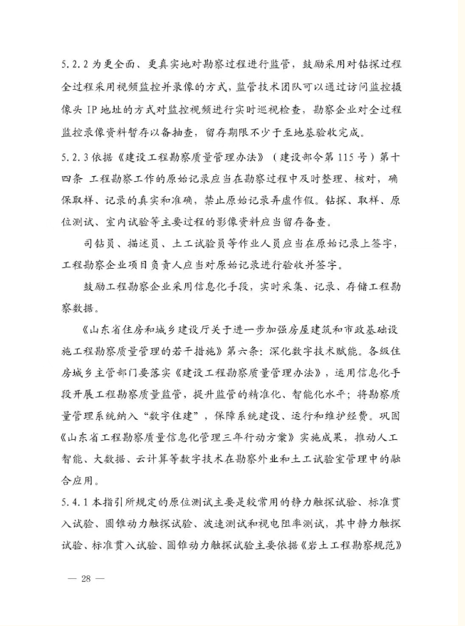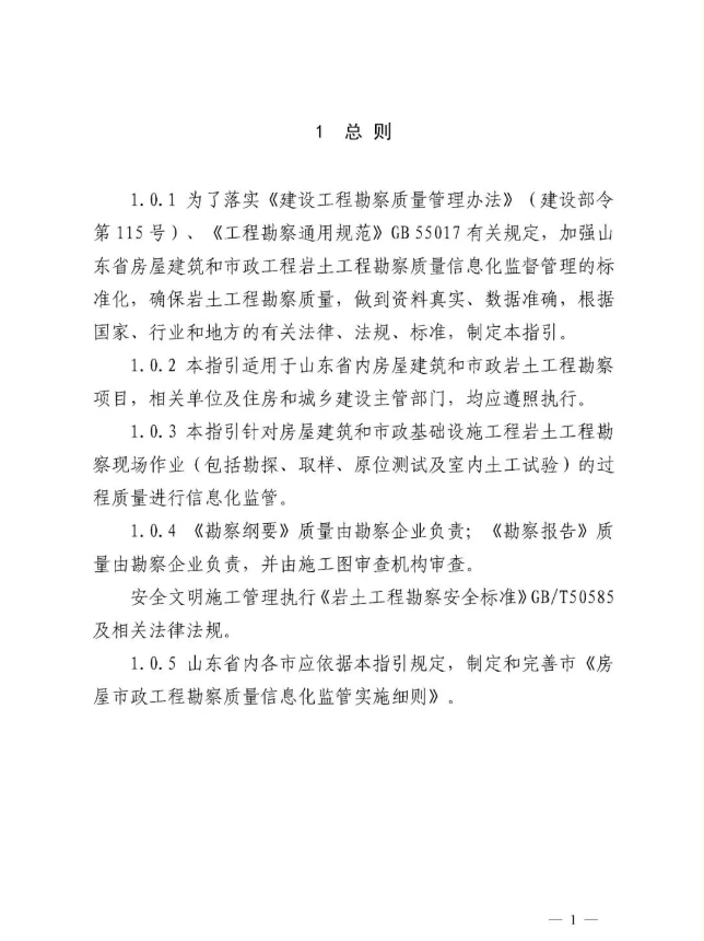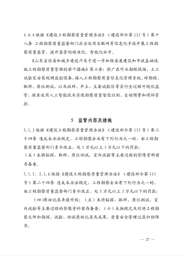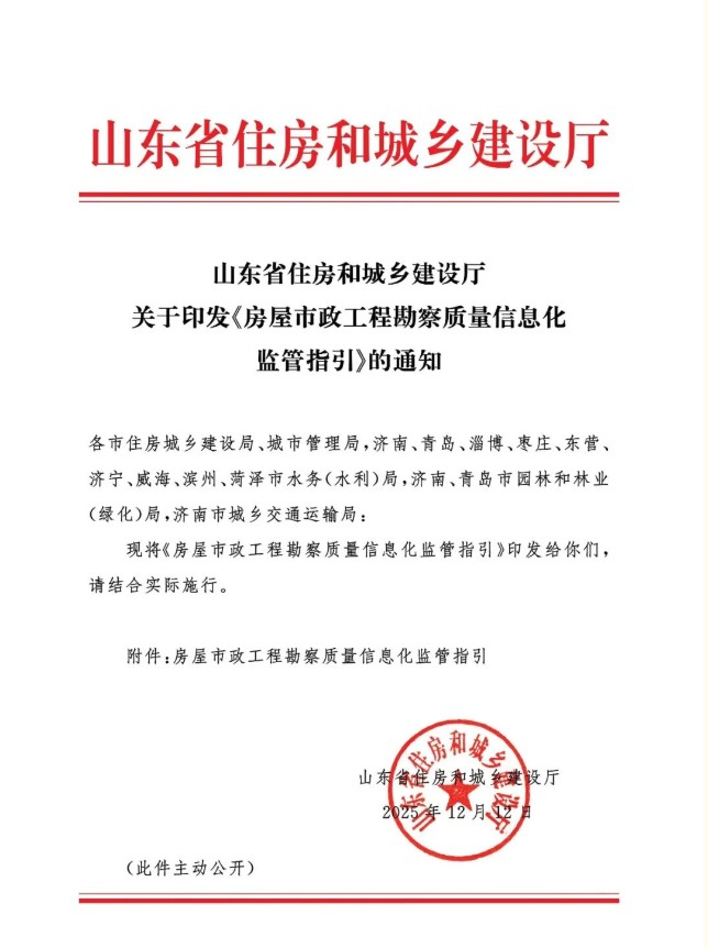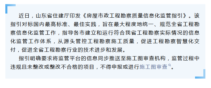 山东省住房和城乡建设厅关于印发《房屋市政工程勘察质量信息化监管指引》的通知