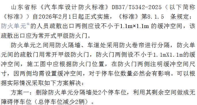 汽车库防火单元缓冲空间对停车位的影响《汽车库设计防火标准》有关问题的探讨(二)
